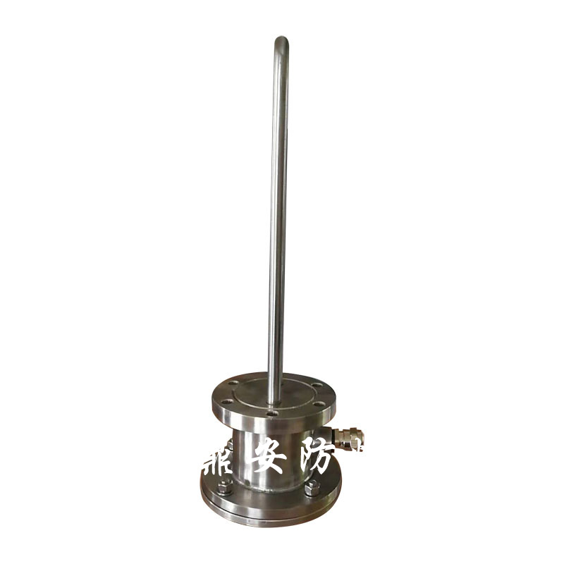 防爆法蘭電加熱管(也稱插入式電加熱器):是采用U型管狀電熱元件,依據加熱不同介質設計規范,按照功率配置要求裝配在法蘭蓋上,插入需加熱物料中,發熱元件工作時所發出的大量熱量傳導給被加熱介質使介質溫度升高,達到所需的工藝要求。當介質溫度達到工藝要求的設定值時,控制系統根據溫度傳感器信號,經PID 運算后調節電加熱器輸出功率,對發熱元件的電阻性負載實現溫度控制。使介質溫度均勻,達到所需要求;當發熱元件超溫或低液位時,發熱元件的聯鎖保護裝置立即切斷加熱電源避免發熱元件燒壞,延長使用壽命。