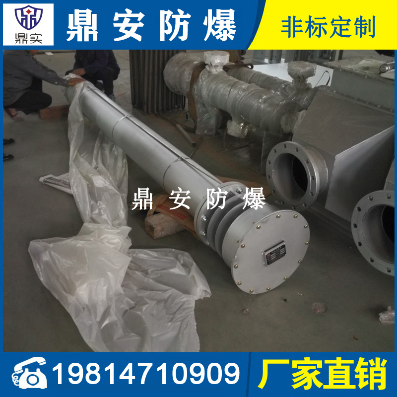 防爆法蘭加熱管它是由防爆加熱管與防爆接線盒配合而成,防爆法蘭加熱管是一種用于防爆場合的以電力轉換為熱能的一種設備。用于對流動或靜止的液態、氣態、固態介質的升溫、保溫、加熱。當加熱介質在壓力作用下通過電加熱器加熱腔,采用流體熱力學原理均勻地帶走電熱元件工作中所產生的巨大熱量,使被加熱介質溫度達到用戶工藝要求,防爆法蘭加熱管一般用于存在爆炸可能的危險場合,由于周圍環境中存在易燃易爆的各種油、氣、粉塵等,一旦接觸到電火花就會引起爆炸,所以在這種場合加熱就需要采用防爆電加熱器。防爆電加熱器的主要防爆措施是在加熱器的接線盒內有一個隔爆裝置,消除電火花引爆的隱患。對于不同的加熱場合,加熱器的防爆等級要求也不同,視具體情況而定。