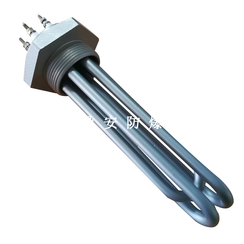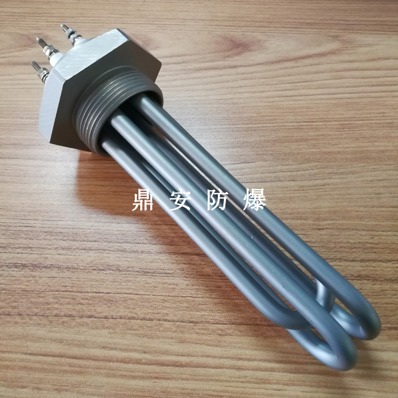法蘭電熱管(也稱插入式電加熱器):是采用U型管狀電熱元件,多支U型電熱管焊接在法蘭上集中加熱,依據(jù)加熱不同介質(zhì)設(shè)計規(guī)范,按照功率配置要求裝配在法蘭蓋上,插入需加熱物料中,發(fā)熱元件工作時所發(fā)出的大量熱量傳導(dǎo)給被加熱介質(zhì)使介質(zhì)溫度升高,達(dá)到所需的工藝要求,主要用于敞開式、封閉式的溶液箱和循環(huán)系統(tǒng)中加熱用。