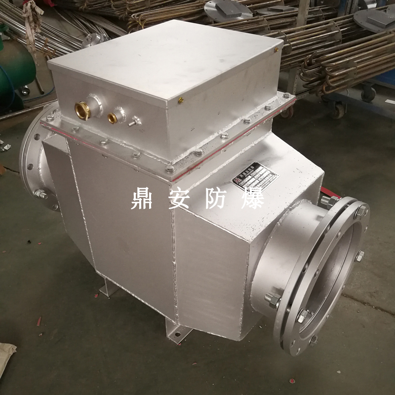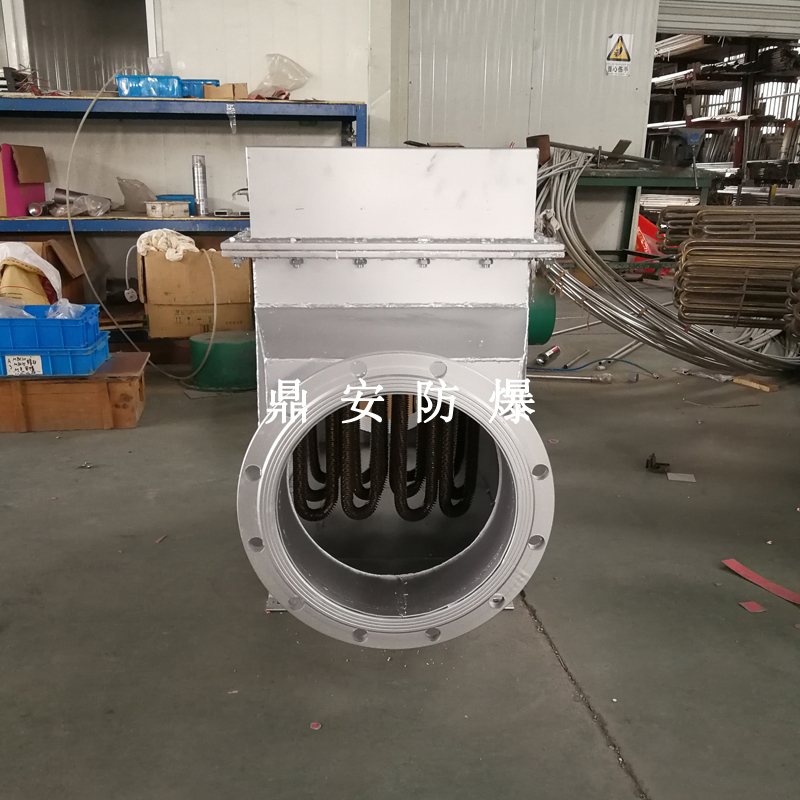 風道式加熱器主要用于風道中的空氣加熱,規格分為低溫、中溫、高溫三種形式,在結構上的共同之處是采用鋼板支撐電熱管以減少電熱管的振動,接線盒中都裝有超溫控制裝置。另在控制方面除裝有超溫保護外,還在風機與加熱器之間加裝聯運裝置,以確保電加熱器起動必須在風機起動之后,在加熱器前后加一差壓裝置,以防風機故障,通道加熱器加熱的氣體壓力一般不應超過0.3Kg/cm2,如需超過以上壓力,請選用循環式電加熱器;低溫型加熱器氣體加熱溫度不超過160℃;中溫型不超過260℃;高溫型不超過500℃。