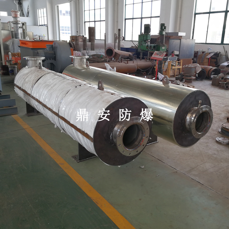 空氣電加熱器主要是用來將所需要的空氣流從初始溫度加熱到所需要的空氣溫度,可達850℃。已被廣泛的應用到航空航天、熔噴非織造、薄膜、化工工業和高等院校等許多科研生產試驗室??諝饧訜崞饕挚垢邷乜諝獾难趸饔茫虼瞬牧媳仨氝x用不銹鋼??諝饧訜崞鞯陌l熱元件為不銹鋼電加熱管。加熱器內腔設置多個折流板,可延長空氣在加熱器內腔滯留時間,以提高熱交換效率。適當增加加熱管數量,提高空氣加熱器的裝機功率,可縮短生產線開車升溫時間??諝怆娂訜崞魇褂玫姆秶鷮挘嚎梢詫θ魏螝怏w加熱,產生的熱空氣干燥無水份、不導電、不燃燒、不爆炸、無化學腐蝕性、無污染、安全可靠、被加熱空間升溫快(可控)。