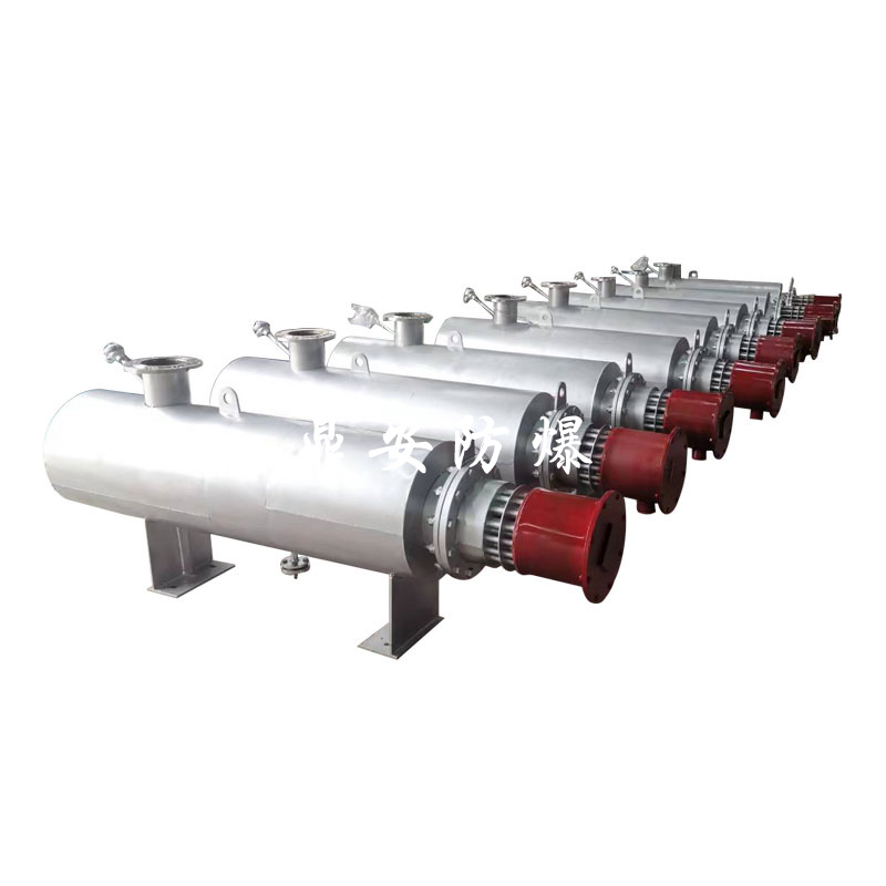 空氣電加熱器主要是用來將所需要的空氣流從初始溫度加熱到所需要的空氣溫度,可達850℃。已被廣泛的應用到航空航天、熔噴非織造、薄膜、化工工業和高等院校等許多科研生產試驗室。空氣加熱器要抵抗高溫空氣的氧化作用,因此材料必須選用不銹鋼。空氣加熱器的發熱元件為不銹鋼電加熱管。加熱器內腔設置多個折流板,可延長空氣在加熱器內腔滯留時間,以提高熱交換效率。適當增加加熱管數量,提高空氣加熱器的裝機功率,可縮短生產線開車升溫時間。空氣電加熱器使用的范圍寬:可以對任何氣體加熱,產生的熱空氣干燥無水份、不導電、不燃燒、不爆炸、無化學腐蝕性、無污染、安全可靠、被加熱空間升溫快(可控)。