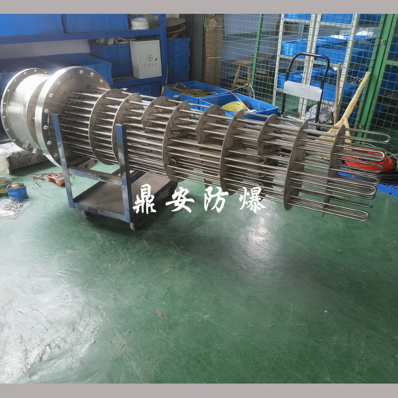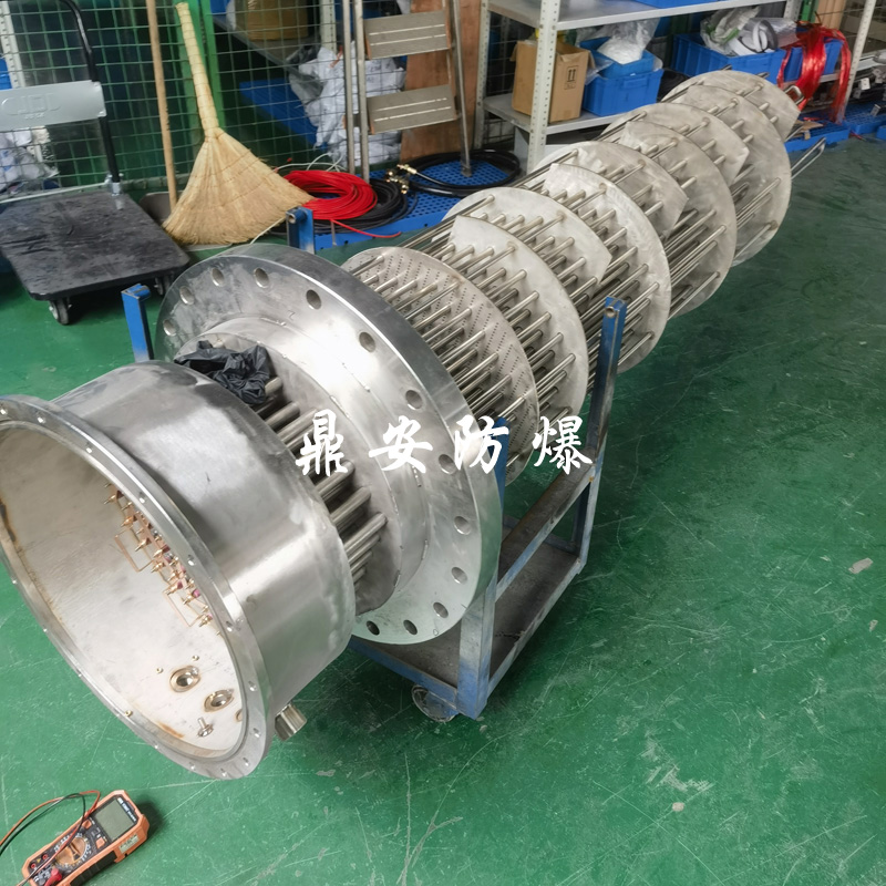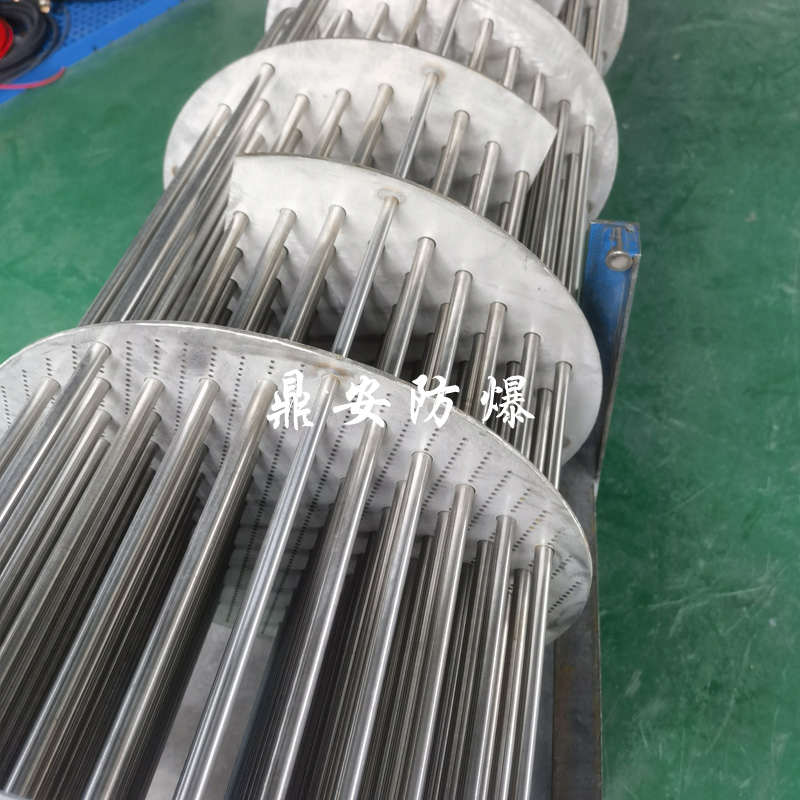 防爆法蘭加熱管是由多支加熱管焊接在法蘭上集中加熱。主要用于敞開式、封閉式的溶液箱和循環系統中加熱用。優點: 表面功率大,使一般電加熱表面負荷的2~4倍,高度密集式、結構緊湊。由于整體短而密集,故穩定性好,安裝無需支架。組合式法蘭加熱管大多采用氬弧焊接方式使電熱管于法蘭連接,也可利用緊固裝置的形式,即每支電熱管上焊由緊固件。然后與法蘭蓋采用螺母鎖緊。管子于緊固件采用氬弧焊接。緊固件密封處采用科學的工藝。單支更換方便,大大節約以后的維修成本選擇進口及國內優質材料。科學的生產工藝,嚴格的質量管理,保證電熱管優越的電氣性能。